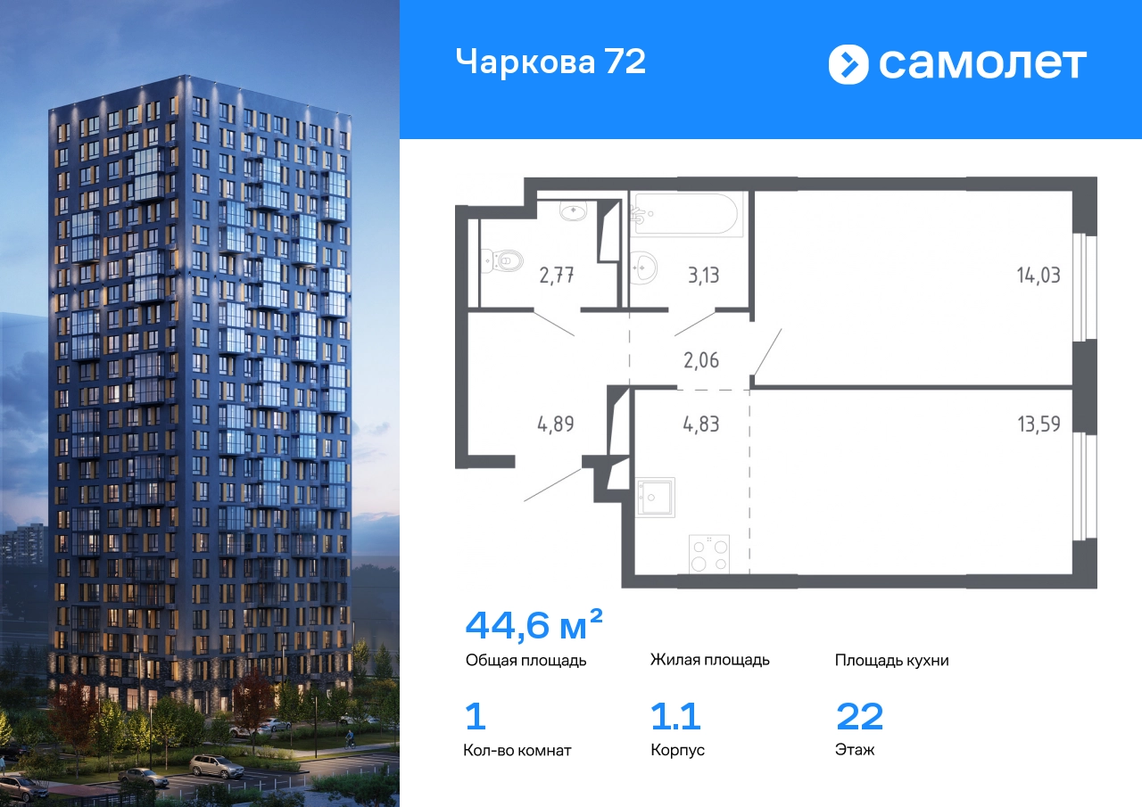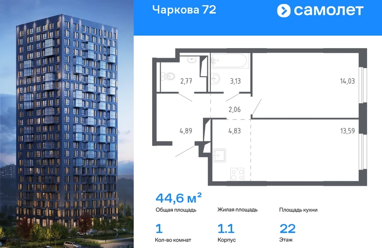 Строим кварталы для жизни с заботой о будущем. Предлагается 1-комнатная квартира комфорт-класса 44,6 кв.м в корпусе 1.1 на 22 этаже, в ЖК «Чаркова 72» Квартира с чистовой отделкой. Доступность дополнительных опций уточняйте у застройщика. Приобрести квартиру возможно по специальным акциям от застройщика, с текущими условиями акций можно ознакомиться в блоке «Акций». Цена динамическая и может отличаться, уточняйте актуальность у застройщика. Идеальное сочетание городского комфорта и размеренной жизни — квартал «Чаркова 72» на северо-востоке города. В дизайне 17-24-этажных домов с панорамными балконами нашли отражение нотки сибирской природы. От «Чаркова 72» удобно добираться до центра города — всего 17 минут пути. А в 2 минутах от дома находится Тобольский тракт. Для семейного отдыха отлично подойдет парк Гагарина — он находится в 7 минутах от квартала. В закрытых дворах тихо и уютно — все авто остались на одном из 4 многоуровневых паркингов, которые находятся за территорией квартала. Можно спокойно гулять по бульвару и заниматься йогой на спортивной площадке. На первых этажах домов — кафе и магазины. Рядом с проектом — детские сады и школы, городская поликлиника и МФЦ. Во всех квартирах есть выводы под кондиционеры, на подземных этажах — индивидуальные кладовые, на первых — места для хранения велосипедов и колясок. В квартирах можно выбрать варианты отделки: чистовая, черновая и улучшенная из материалов повышенного класса.#yan19-2r1517824#О застройщике