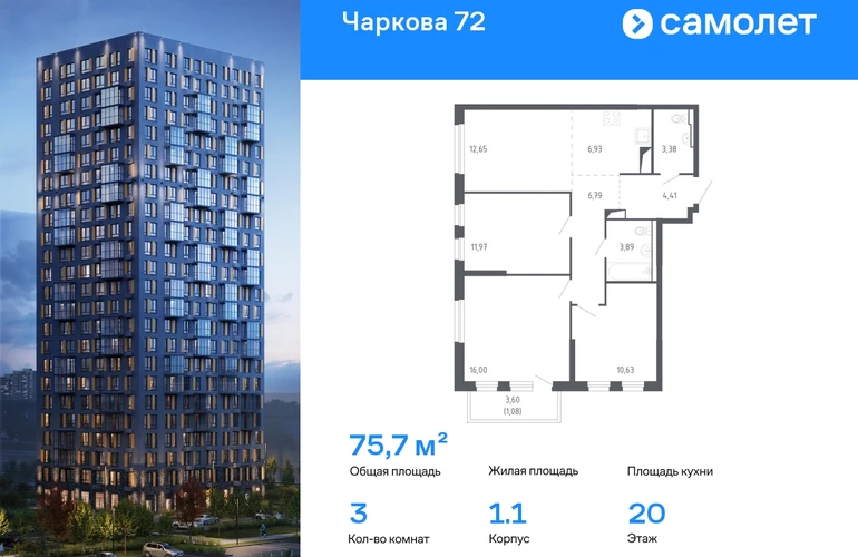 Строим кварталы для жизни с заботой о будущем. Предлагается 3-комнатная квартира комфорт-класса 76,8 кв.м в корпусе 1.1 на 20 этаже, в ЖК «Чаркова 72» Квартира с чистовой отделкой. Доступность дополнительных опций уточняйте у застройщика. Приобрести квартиру возможно по специальным акциям от застройщика, с текущими условиями акций можно ознакомиться в блоке «Акций». Цена динамическая и может отличаться, уточняйте актуальность у застройщика. Идеальное сочетание городского комфорта и размеренной жизни — квартал «Чаркова 72» на северо-востоке города. В дизайне 17-24-этажных домов с панорамными балконами нашли отражение нотки сибирской природы. От «Чаркова 72» удобно добираться до центра города — всего 17 минут пути. А в 2 минутах от дома находится Тобольский тракт. Для семейного отдыха отлично подойдет парк Гагарина — он находится в 7 минутах от квартала. В закрытых дворах тихо и уютно — все авто остались на одном из 4 многоуровневых паркингов, которые находятся за территорией квартала. Можно спокойно гулять по бульвару и заниматься йогой на спортивной площадке. На первых этажах домов — кафе и магазины. Рядом с проектом — детские сады и школы, городская поликлиника и МФЦ. Во всех квартирах есть выводы под кондиционеры, на подземных этажах — индивидуальные кладовые, на первых — места для хранения велосипедов и колясок. В квартирах можно выбрать варианты отделки: чистовая, черновая и улучшенная из материалов повышенного класса.#yan19-2r1557926#О застройщике