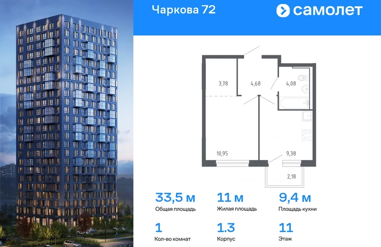 Строим кварталы для жизни с заботой о будущем. Предлагается 1-комнатная квартира комфорт-класса 33,52 кв.м в корпусе 1.3 на 11 этаже, в ЖК «Чаркова 72» Квартира с предчистовой отделкой. Доступность дополнительных опций уточняйте у застройщика. Приобрести квартиру возможно по специальным акциям от застройщика, с текущими условиями акций можно ознакомиться в блоке «Акций». Цена динамическая и может отличаться, уточняйте актуальность у застройщика. Идеальное сочетание городского комфорта и размеренной жизни — квартал «Чаркова 72» на северо-востоке города. В дизайне 17-24-этажных домов с панорамными балконами нашли отражение нотки сибирской природы. От «Чаркова 72» удобно добираться до центра города — всего 17 минут пути. А в 2 минутах от дома находится Тобольский тракт. Для семейного отдыха отлично подойдет парк Гагарина — он находится в 7 минутах от квартала. В закрытых дворах тихо и уютно — все авто остались на одном из 4 многоуровневых паркингов, которые находятся за территорией квартала. Можно спокойно гулять по бульвару и заниматься йогой на спортивной площадке. На первых этажах домов — кафе и магазины. Рядом с проектом — детские сады и школы, городская поликлиника и МФЦ. Во всех квартирах есть выводы под кондиционеры, на подземных этажах — индивидуальные кладовые, на первых — места для хранения велосипедов и колясок. В квартирах можно выбрать варианты отделки: чистовая, черновая и улучшенная из материалов повышенного класса.#yan19-2r1560616#О застройщике