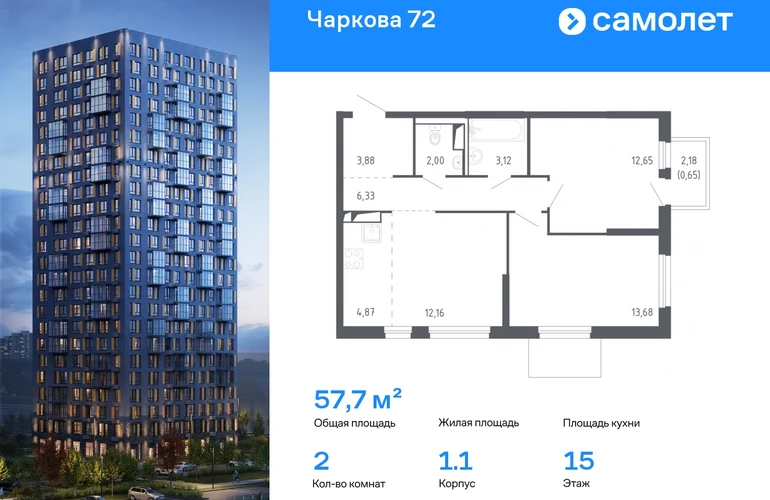 Строим кварталы для жизни с заботой о будущем. Предлагается 2-комнатная квартира комфорт-класса 58,4 кв.м в корпусе 1.1 на 15 этаже, в ЖК «Чаркова 72» Квартира с чистовой отделкой. Доступность дополнительных опций уточняйте у застройщика. Приобрести квартиру возможно по специальным акциям от застройщика, с текущими условиями акций можно ознакомиться в блоке «Акций». Цена динамическая и может отличаться, уточняйте актуальность у застройщика. Идеальное сочетание городского комфорта и размеренной жизни — квартал «Чаркова 72» на северо-востоке города. В дизайне 17-24-этажных домов с панорамными балконами нашли отражение нотки сибирской природы. От «Чаркова 72» удобно добираться до центра города — всего 17 минут пути. А в 2 минутах от дома находится Тобольский тракт. Для семейного отдыха отлично подойдет парк Гагарина — он находится в 7 минутах от квартала. В закрытых дворах тихо и уютно — все авто остались на одном из 4 многоуровневых паркингов, которые находятся за территорией квартала. Можно спокойно гулять по бульвару и заниматься йогой на спортивной площадке. На первых этажах домов — кафе и магазины. Рядом с проектом — детские сады и школы, городская поликлиника и МФЦ. Во всех квартирах есть выводы под кондиционеры, на подземных этажах — индивидуальные кладовые, на первых — места для хранения велосипедов и колясок. В квартирах можно выбрать варианты отделки: чистовая, черновая и улучшенная из материалов повышенного класса.#yan19-2r1574099#О застройщике