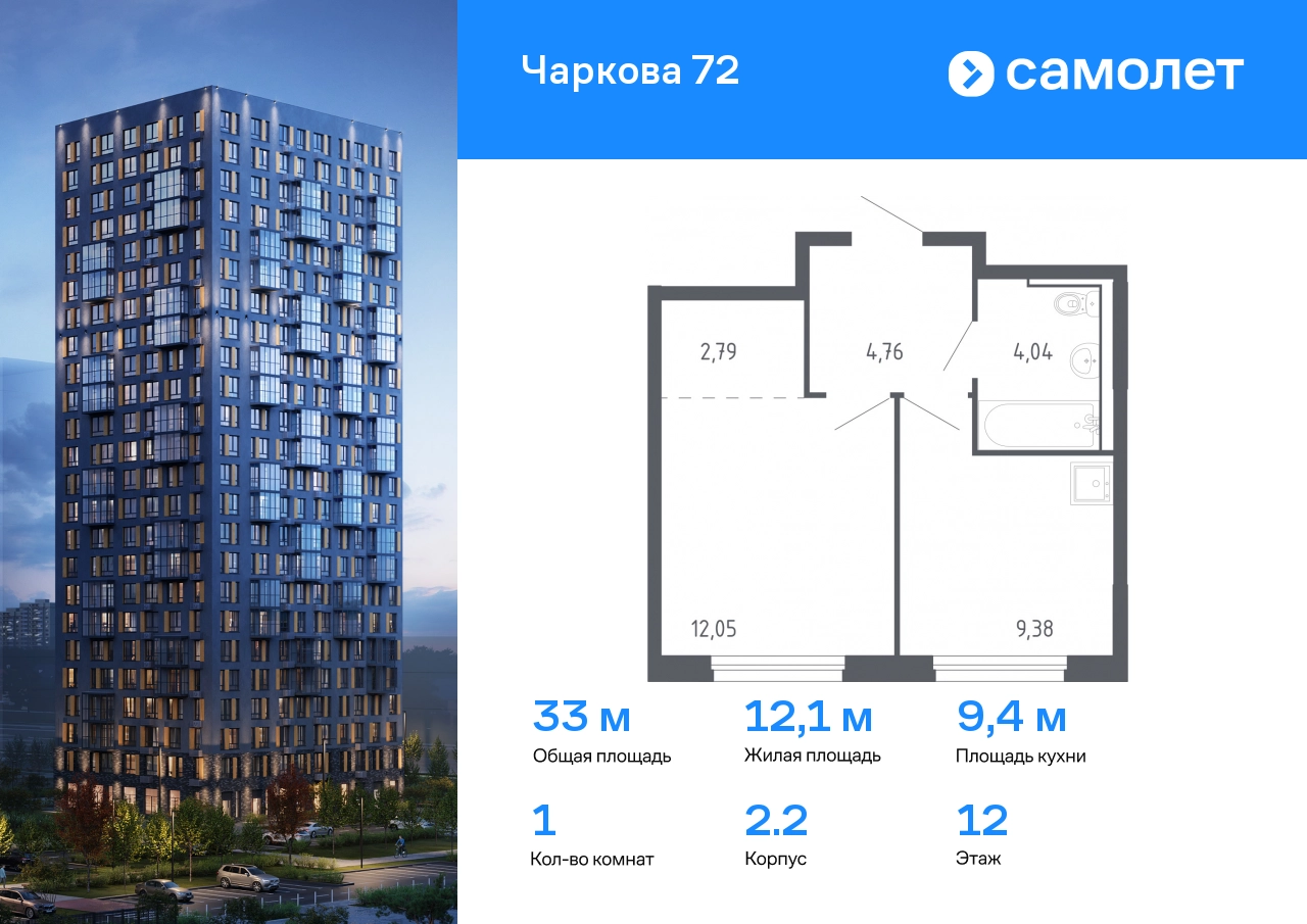 Строим кварталы для жизни с заботой о будущем. Предлагается 1-комнатная квартира комфорт-класса 33,02 кв.м в корпусе 2.2 на 12 этаже, в ЖК «Чаркова 72» Квартира с предчистовой отделкой. Доступность дополнительных опций уточняйте у застройщика. Приобрести квартиру возможно по специальным акциям от застройщика, с текущими условиями акций можно ознакомиться в блоке «Акций». Цена динамическая и может отличаться, уточняйте актуальность у застройщика. Идеальное сочетание городского комфорта и размеренной жизни — квартал «Чаркова 72» на северо-востоке города. В дизайне 17-24-этажных домов с панорамными балконами нашли отражение нотки сибирской природы. От «Чаркова 72» удобно добираться до центра города — всего 17 минут пути. А в 2 минутах от дома находится Тобольский тракт. Для семейного отдыха отлично подойдет парк Гагарина — он находится в 7 минутах от квартала. В закрытых дворах тихо и уютно — все авто остались на одном из 4 многоуровневых паркингов, которые находятся за территорией квартала. Можно спокойно гулять по бульвару и заниматься йогой на спортивной площадке. На первых этажах домов — кафе и магазины. Рядом с проектом — детские сады и школы, городская поликлиника и МФЦ. Во всех квартирах есть выводы под кондиционеры, на подземных этажах — индивидуальные кладовые, на первых — места для хранения велосипедов и колясок. В квартирах можно выбрать варианты отделки: чистовая, черновая и улучшенная из материалов повышенного класса.#yan19-2r1585544#О застройщике