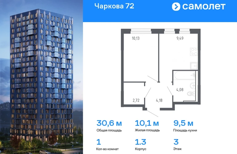 Строим кварталы для жизни с заботой о будущем. Предлагается 1-комнатная квартира комфорт-класса 30,6 кв.м в корпусе 1.3 на 3 этаже, в ЖК «Чаркова 72» Квартира с предчистовой отделкой. Доступность дополнительных опций уточняйте у застройщика. Приобрести квартиру возможно по специальным акциям от застройщика, с текущими условиями акций можно ознакомиться в блоке «Акций». Цена динамическая и может отличаться, уточняйте актуальность у застройщика. Идеальное сочетание городского комфорта и размеренной жизни — квартал «Чаркова 72» на северо-востоке города. В дизайне 17-24-этажных домов с панорамными балконами нашли отражение нотки сибирской природы. От «Чаркова 72» удобно добираться до центра города — всего 17 минут пути. А в 2 минутах от дома находится Тобольский тракт. Для семейного отдыха отлично подойдет парк Гагарина — он находится в 7 минутах от квартала. В закрытых дворах тихо и уютно — все авто остались на одном из 4 многоуровневых паркингов, которые находятся за территорией квартала. Можно спокойно гулять по бульвару и заниматься йогой на спортивной площадке. На первых этажах домов — кафе и магазины. Рядом с проектом — детские сады и школы, городская поликлиника и МФЦ. Во всех квартирах есть выводы под кондиционеры, на подземных этажах — индивидуальные кладовые, на первых — места для хранения велосипедов и колясок. В квартирах можно выбрать варианты отделки: чистовая, черновая и улучшенная из материалов повышенного класса.#yan19-2r1665791#О застройщике