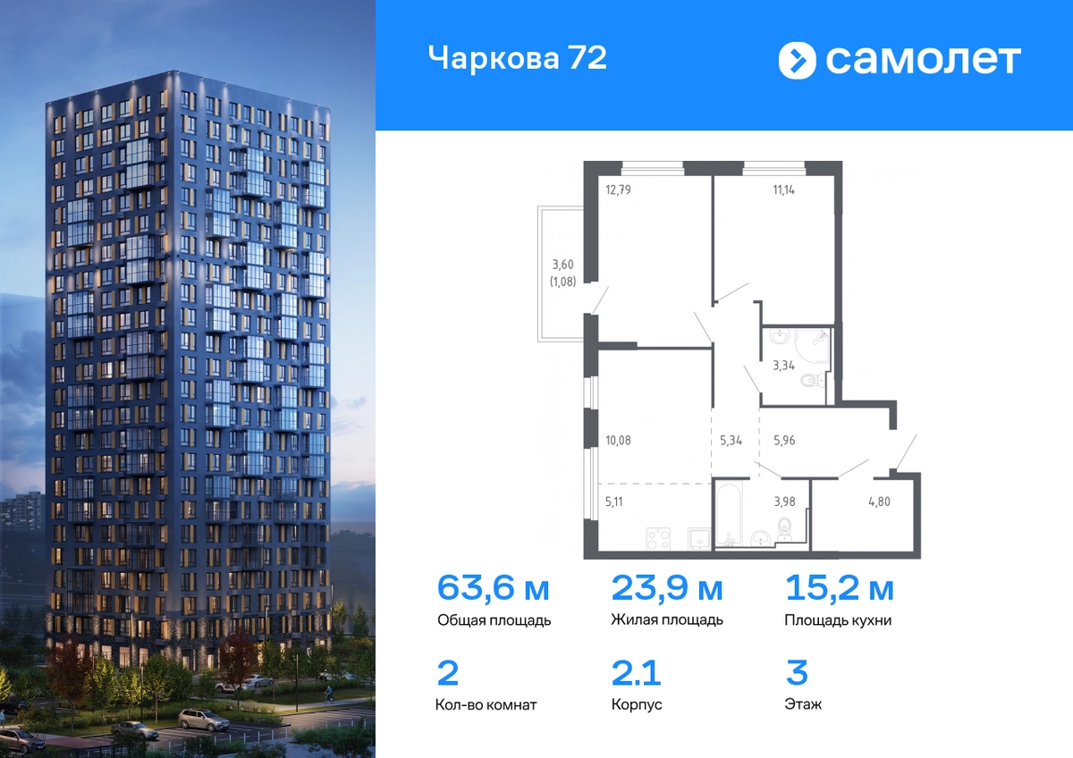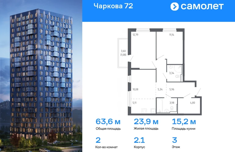Строим кварталы для жизни с заботой о будущем. Предлагается 2-комнатная квартира комфорт-класса 63,62 кв.м в корпусе 2.1 на 3 этаже, в ЖК «Чаркова 72» Квартира с чистовой отделкой. Доступность дополнительных опций уточняйте у застройщика. Приобрести квартиру возможно по специальным акциям от застройщика, с текущими условиями акций можно ознакомиться в блоке «Акций». Цена динамическая и может отличаться, уточняйте актуальность у застройщика. Идеальное сочетание городского комфорта и размеренной жизни — квартал «Чаркова 72» на северо-востоке города. В дизайне 17-24-этажных домов с панорамными балконами нашли отражение нотки сибирской природы. От «Чаркова 72» удобно добираться до центра города — всего 17 минут пути. А в 2 минутах от дома находится Тобольский тракт. Для семейного отдыха отлично подойдет парк Гагарина — он находится в 7 минутах от квартала. В закрытых дворах тихо и уютно — все авто остались на одном из 4 многоуровневых паркингов, которые находятся за территорией квартала. Можно спокойно гулять по бульвару и заниматься йогой на спортивной площадке. На первых этажах домов — кафе и магазины. Рядом с проектом — детские сады и школы, городская поликлиника и МФЦ. Во всех квартирах есть выводы под кондиционеры, на подземных этажах — индивидуальные кладовые, на первых — места для хранения велосипедов и колясок. В квартирах можно выбрать варианты отделки: чистовая, черновая и улучшенная из материалов повышенного класса.#yan19-2r1666386#О застройщике