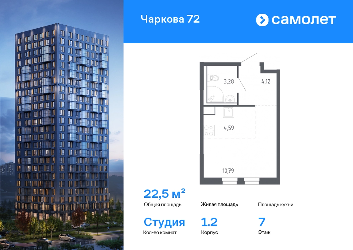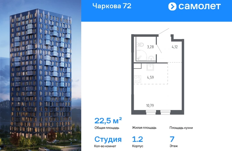 Строим кварталы для жизни с заботой о будущем. Предлагается квартира студия комфорт-класса 22,5 кв.м в корпусе 1.2 на 7 этаже, в ЖК «Чаркова 72» Квартира с чистовой отделкой. Доступность дополнительных опций уточняйте у застройщика. Приобрести квартиру возможно по специальным акциям от застройщика, с текущими условиями акций можно ознакомиться в блоке «Акций». Цена динамическая и может отличаться, уточняйте актуальность у застройщика. Идеальное сочетание городского комфорта и размеренной жизни — квартал «Чаркова 72» на северо-востоке города. В дизайне 17-24-этажных домов с панорамными балконами нашли отражение нотки сибирской природы. От «Чаркова 72» удобно добираться до центра города — всего 17 минут пути. А в 2 минутах от дома находится Тобольский тракт. Для семейного отдыха отлично подойдет парк Гагарина — он находится в 7 минутах от квартала. В закрытых дворах тихо и уютно — все авто остались на одном из 4 многоуровневых паркингов, которые находятся за территорией квартала. Можно спокойно гулять по бульвару и заниматься йогой на спортивной площадке. На первых этажах домов — кафе и магазины. Рядом с проектом — детские сады и школы, городская поликлиника и МФЦ. Во всех квартирах есть выводы под кондиционеры, на подземных этажах — индивидуальные кладовые, на первых — места для хранения велосипедов и колясок. В квартирах можно выбрать варианты отделки: чистовая, черновая и улучшенная из материалов повышенного класса.#yan19-2r1669476#О застройщике