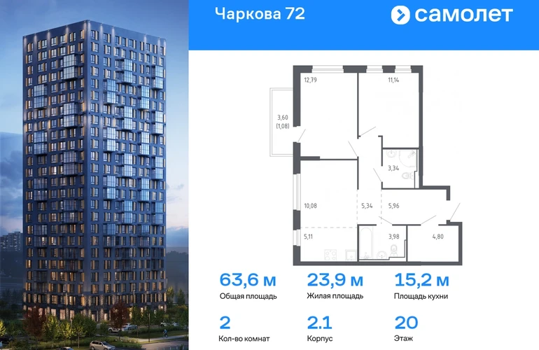 Строим кварталы для жизни с заботой о будущем. Предлагается 2-комнатная квартира комфорт-класса 63,62 кв.м в корпусе 2.1 на 20 этаже, в ЖК «Чаркова 72» Квартира с чистовой отделкой. Доступность дополнительных опций уточняйте у застройщика. Приобрести квартиру возможно по специальным акциям от застройщика, с текущими условиями акций можно ознакомиться в блоке «Акций». Цена динамическая и может отличаться, уточняйте актуальность у застройщика. Идеальное сочетание городского комфорта и размеренной жизни — квартал «Чаркова 72» на северо-востоке города. В дизайне 17-24-этажных домов с панорамными балконами нашли отражение нотки сибирской природы. От «Чаркова 72» удобно добираться до центра города — всего 17 минут пути. А в 2 минутах от дома находится Тобольский тракт. Для семейного отдыха отлично подойдет парк Гагарина — он находится в 7 минутах от квартала. В закрытых дворах тихо и уютно — все авто остались на одном из 4 многоуровневых паркингов, которые находятся за территорией квартала. Можно спокойно гулять по бульвару и заниматься йогой на спортивной площадке. На первых этажах домов — кафе и магазины. Рядом с проектом — детские сады и школы, городская поликлиника и МФЦ. Во всех квартирах есть выводы под кондиционеры, на подземных этажах — индивидуальные кладовые, на первых — места для хранения велосипедов и колясок. В квартирах можно выбрать варианты отделки: чистовая, черновая и улучшенная из материалов повышенного класса.#yan19-2r1672438#О застройщике