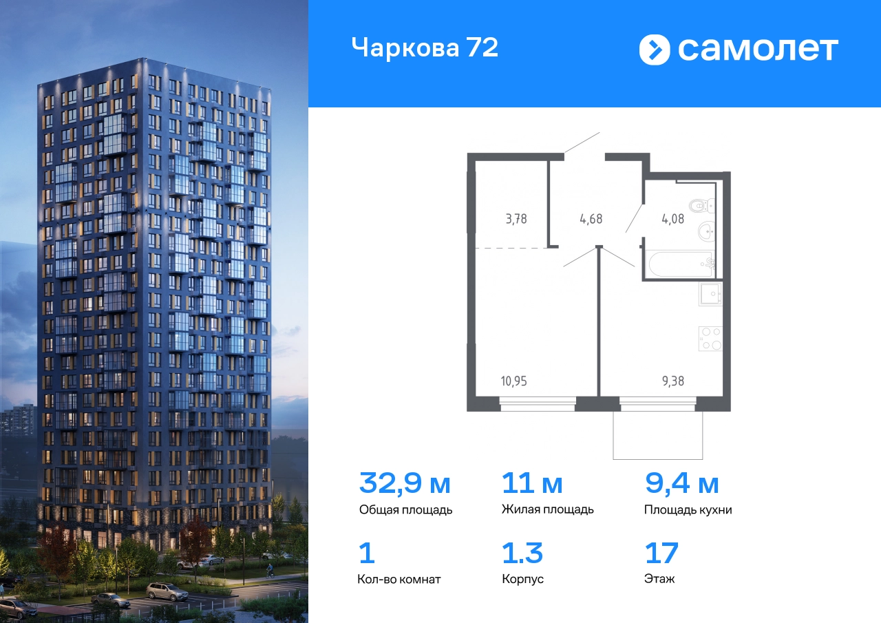 Строим кварталы для жизни с заботой о будущем. Предлагается 1-комнатная квартира комфорт-класса 32,87 кв.м в корпусе 1.3 на 17 этаже, в ЖК «Чаркова 72» Квартира с предчистовой отделкой. Доступность дополнительных опций уточняйте у застройщика. Приобрести квартиру возможно по специальным акциям от застройщика, с текущими условиями акций можно ознакомиться в блоке «Акций». Цена динамическая и может отличаться, уточняйте актуальность у застройщика. Идеальное сочетание городского комфорта и размеренной жизни — квартал «Чаркова 72» на северо-востоке города. В дизайне 17-24-этажных домов с панорамными балконами нашли отражение нотки сибирской природы. От «Чаркова 72» удобно добираться до центра города — всего 17 минут пути. А в 2 минутах от дома находится Тобольский тракт. Для семейного отдыха отлично подойдет парк Гагарина — он находится в 7 минутах от квартала. В закрытых дворах тихо и уютно — все авто остались на одном из 4 многоуровневых паркингов, которые находятся за территорией квартала. Можно спокойно гулять по бульвару и заниматься йогой на спортивной площадке. На первых этажах домов — кафе и магазины. Рядом с проектом — детские сады и школы, городская поликлиника и МФЦ. Во всех квартирах есть выводы под кондиционеры, на подземных этажах — индивидуальные кладовые, на первых — места для хранения велосипедов и колясок. В квартирах можно выбрать варианты отделки: чистовая, черновая и улучшенная из материалов повышенного класса.#yan19-2r1678033#О застройщике