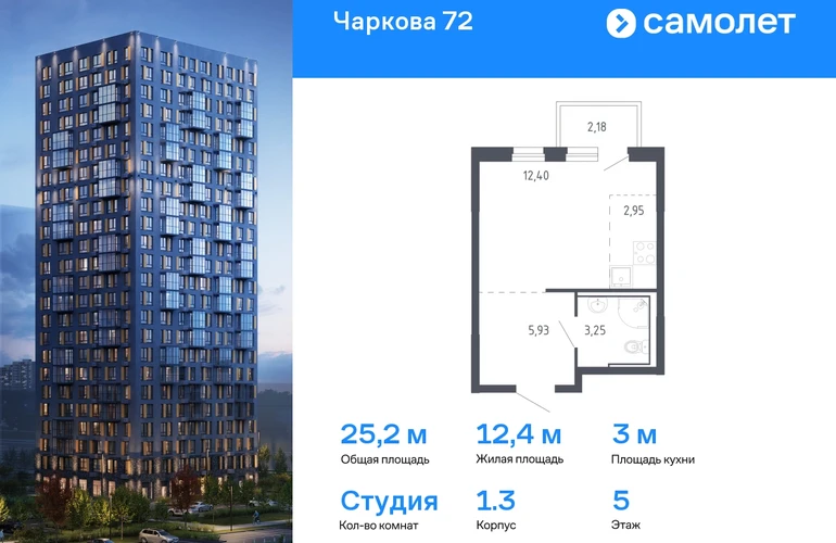 Строим кварталы для жизни с заботой о будущем. Предлагается квартира студия комфорт-класса 25,18 кв.м в корпусе 1.3 на 5 этаже, в ЖК «Чаркова 72» Квартира с предчистовой отделкой. Доступность дополнительных опций уточняйте у застройщика. Приобрести квартиру возможно по специальным акциям от застройщика, с текущими условиями акций можно ознакомиться в блоке «Акций». Цена динамическая и может отличаться, уточняйте актуальность у застройщика. Идеальное сочетание городского комфорта и размеренной жизни — квартал «Чаркова 72» на северо-востоке города. В дизайне 17-24-этажных домов с панорамными балконами нашли отражение нотки сибирской природы. От «Чаркова 72» удобно добираться до центра города — всего 17 минут пути. А в 2 минутах от дома находится Тобольский тракт. Для семейного отдыха отлично подойдет парк Гагарина — он находится в 7 минутах от квартала. В закрытых дворах тихо и уютно — все авто остались на одном из 4 многоуровневых паркингов, которые находятся за территорией квартала. Можно спокойно гулять по бульвару и заниматься йогой на спортивной площадке. На первых этажах домов — кафе и магазины. Рядом с проектом — детские сады и школы, городская поликлиника и МФЦ. Во всех квартирах есть выводы под кондиционеры, на подземных этажах — индивидуальные кладовые, на первых — места для хранения велосипедов и колясок. В квартирах можно выбрать варианты отделки: чистовая, черновая и улучшенная из материалов повышенного класса.#yan19-2r1716234#О застройщике