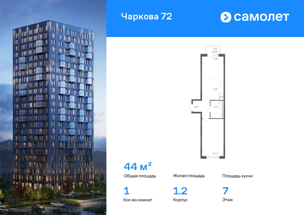Предлагается 1-комнатная квартира комфорт-класса 44 кв.м в корпусе 1.2 на 7 этаже, в ЖК «Чаркова 72» Квартира с чистовой отделкой. Доступность дополнительных опций уточняйте у застройщика. Приобрести квартиру возможно по специальным акциям от застройщика, с текущими условиями акций можно ознакомиться в блоке «Акций». Цена динамическая и может отличаться, уточняйте актуальность у застройщика. Идеальное сочетание городского комфорта и размеренной жизни — квартал «Чаркова 72» на северо-востоке города. В дизайне 17-24-этажных домов с панорамными балконами нашли отражение нотки сибирской природы. От «Чаркова 72» удобно добираться до центра города — всего 17 минут пути. А в 2 минутах от дома находится Тобольский тракт. Для семейного отдыха отлично подойдет парк Гагарина — он находится в 7 минутах от квартала. В закрытых дворах тихо и уютно — все авто остались на одном из 4 многоуровневых паркингов, которые находятся за территорией квартала. Можно спокойно гулять по бульвару и заниматься йогой на спортивной площадке. На первых этажах домов — кафе и магазины. Рядом с проектом — детские сады и школы, городская поликлиника и МФЦ. Во всех квартирах есть выводы под кондиционеры, на подземных этажах — индивидуальные кладовые, на первых — места для хранения велосипедов и колясок. В квартирах можно выбрать варианты отделки: чистовая, черновая и улучшенная из материалов повышенного класса.#yan19-2r1729238#О застройщике