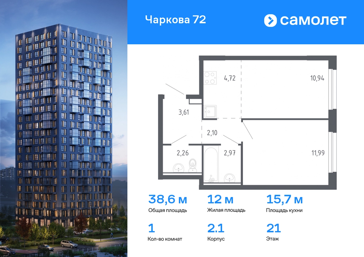 Строим кварталы для жизни с заботой о будущем. Предлагается 1-комнатная квартира комфорт-класса 38,59 кв.м в корпусе 2.1 на 21 этаже, в ЖК «Чаркова 72» Квартира с чистовой отделкой. Доступность дополнительных опций уточняйте у застройщика. Приобрести квартиру возможно по специальным акциям от застройщика, с текущими условиями акций можно ознакомиться в блоке «Акций». Цена динамическая и может отличаться, уточняйте актуальность у застройщика. Идеальное сочетание городского комфорта и размеренной жизни — квартал «Чаркова 72» на северо-востоке города. В дизайне 17-24-этажных домов с панорамными балконами нашли отражение нотки сибирской природы. От «Чаркова 72» удобно добираться до центра города — всего 17 минут пути. А в 2 минутах от дома находится Тобольский тракт. Для семейного отдыха отлично подойдет парк Гагарина — он находится в 7 минутах от квартала. В закрытых дворах тихо и уютно — все авто остались на одном из 4 многоуровневых паркингов, которые находятся за территорией квартала. Можно спокойно гулять по бульвару и заниматься йогой на спортивной площадке. На первых этажах домов — кафе и магазины. Рядом с проектом — детские сады и школы, городская поликлиника и МФЦ. Во всех квартирах есть выводы под кондиционеры, на подземных этажах — индивидуальные кладовые, на первых — места для хранения велосипедов и колясок. В квартирах можно выбрать варианты отделки: чистовая, черновая и улучшенная из материалов повышенного класса.#yan19-2r1744971#О застройщике