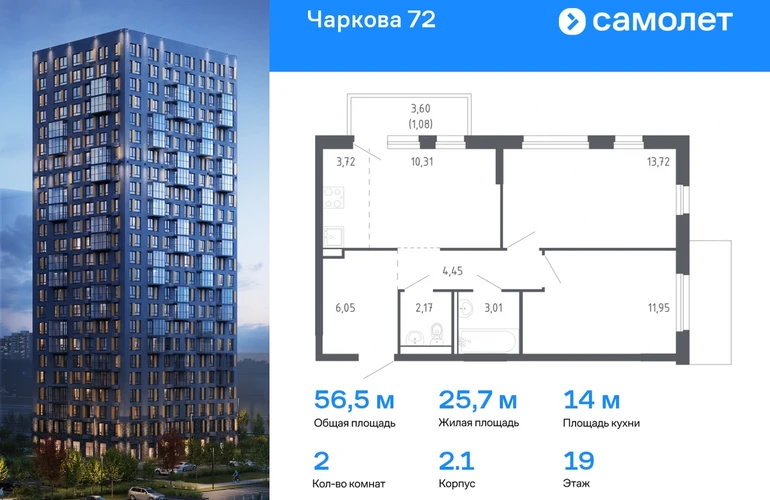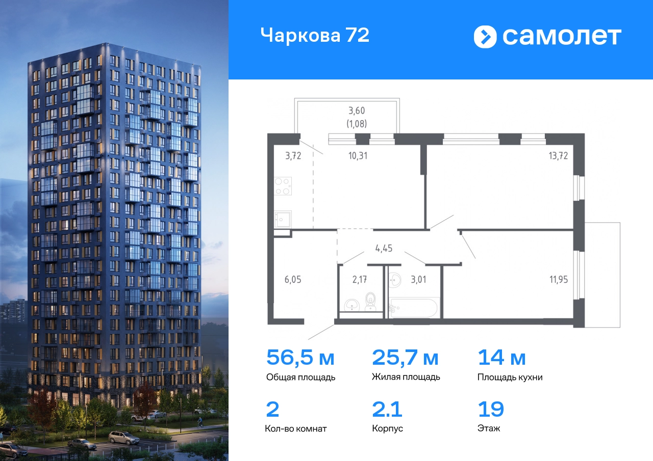 Строим кварталы для жизни с заботой о будущем. Предлагается 2-комнатная квартира комфорт-класса 56,46 кв.м в корпусе 2.1 на 19 этаже, в ЖК «Чаркова 72» Квартира с чистовой отделкой. Доступность дополнительных опций уточняйте у застройщика. Приобрести квартиру возможно по специальным акциям от застройщика, с текущими условиями акций можно ознакомиться в блоке «Акций». Цена динамическая и может отличаться, уточняйте актуальность у застройщика. Идеальное сочетание городского комфорта и размеренной жизни — квартал «Чаркова 72» на северо-востоке города. В дизайне 17-24-этажных домов с панорамными балконами нашли отражение нотки сибирской природы. От «Чаркова 72» удобно добираться до центра города — всего 17 минут пути. А в 2 минутах от дома находится Тобольский тракт. Для семейного отдыха отлично подойдет парк Гагарина — он находится в 7 минутах от квартала. В закрытых дворах тихо и уютно — все авто остались на одном из 4 многоуровневых паркингов, которые находятся за территорией квартала. Можно спокойно гулять по бульвару и заниматься йогой на спортивной площадке. На первых этажах домов — кафе и магазины. Рядом с проектом — детские сады и школы, городская поликлиника и МФЦ. Во всех квартирах есть выводы под кондиционеры, на подземных этажах — индивидуальные кладовые, на первых — места для хранения велосипедов и колясок. В квартирах можно выбрать варианты отделки: чистовая, черновая и улучшенная из материалов повышенного класса.#yan19-2r1744986#О застройщике