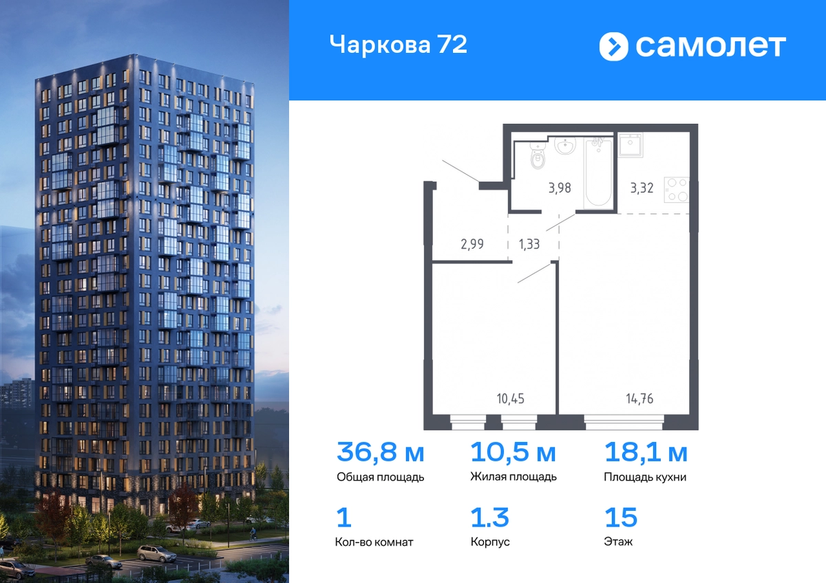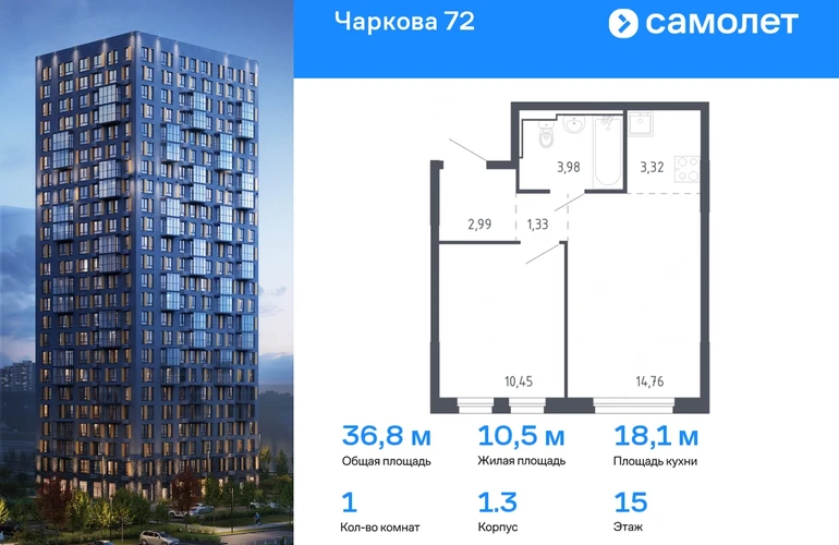 Строим кварталы для жизни с заботой о будущем. Предлагается 1-комнатная квартира комфорт-класса 36,83 кв.м в корпусе 1.3 на 15 этаже, в ЖК «Чаркова 72» Квартира с предчистовой отделкой. Доступность дополнительных опций уточняйте у застройщика. Приобрести квартиру возможно по специальным акциям от застройщика, с текущими условиями акций можно ознакомиться в блоке «Акций». Цена динамическая и может отличаться, уточняйте актуальность у застройщика. Идеальное сочетание городского комфорта и размеренной жизни — квартал «Чаркова 72» на северо-востоке города. В дизайне 17-24-этажных домов с панорамными балконами нашли отражение нотки сибирской природы. От «Чаркова 72» удобно добираться до центра города — всего 17 минут пути. А в 2 минутах от дома находится Тобольский тракт. Для семейного отдыха отлично подойдет парк Гагарина — он находится в 7 минутах от квартала. В закрытых дворах тихо и уютно — все авто остались на одном из 4 многоуровневых паркингов, которые находятся за территорией квартала. Можно спокойно гулять по бульвару и заниматься йогой на спортивной площадке. На первых этажах домов — кафе и магазины. Рядом с проектом — детские сады и школы, городская поликлиника и МФЦ. Во всех квартирах есть выводы под кондиционеры, на подземных этажах — индивидуальные кладовые, на первых — места для хранения велосипедов и колясок. В квартирах можно выбрать варианты отделки: чистовая, черновая и улучшенная из материалов повышенного класса.#yan19-2r1747333#О застройщике