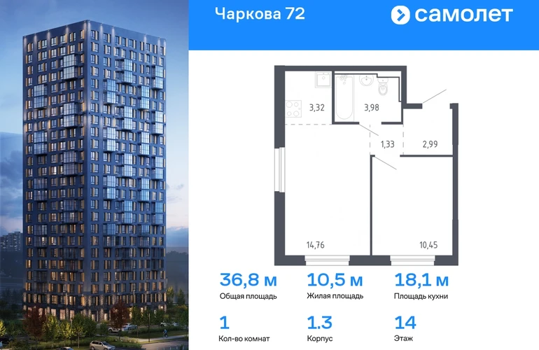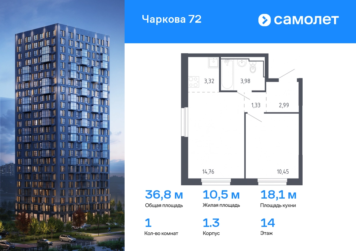 Строим кварталы для жизни с заботой о будущем. Предлагается 1-комнатная квартира комфорт-класса 36,83 кв.м в корпусе 1.3 на 14 этаже, в ЖК «Чаркова 72» Квартира с предчистовой отделкой. Доступность дополнительных опций уточняйте у застройщика. Приобрести квартиру возможно по специальным акциям от застройщика, с текущими условиями акций можно ознакомиться в блоке «Акций». Цена динамическая и может отличаться, уточняйте актуальность у застройщика. Идеальное сочетание городского комфорта и размеренной жизни — квартал «Чаркова 72» на северо-востоке города. В дизайне 17-24-этажных домов с панорамными балконами нашли отражение нотки сибирской природы. От «Чаркова 72» удобно добираться до центра города — всего 17 минут пути. А в 2 минутах от дома находится Тобольский тракт. Для семейного отдыха отлично подойдет парк Гагарина — он находится в 7 минутах от квартала. В закрытых дворах тихо и уютно — все авто остались на одном из 4 многоуровневых паркингов, которые находятся за территорией квартала. Можно спокойно гулять по бульвару и заниматься йогой на спортивной площадке. На первых этажах домов — кафе и магазины. Рядом с проектом — детские сады и школы, городская поликлиника и МФЦ. Во всех квартирах есть выводы под кондиционеры, на подземных этажах — индивидуальные кладовые, на первых — места для хранения велосипедов и колясок. В квартирах можно выбрать варианты отделки: чистовая, черновая и улучшенная из материалов повышенного класса.#yan19-2r1747338#О застройщике