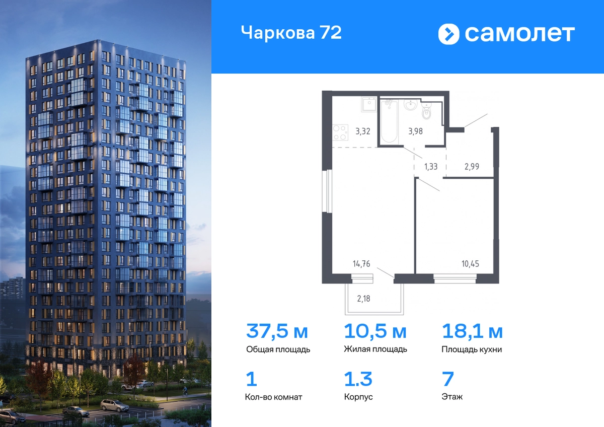Строим кварталы для жизни с заботой о будущем. Предлагается 1-комнатная квартира комфорт-класса 37,48 кв.м в корпусе 1.3 на 7 этаже, в ЖК «Чаркова 72» Квартира с предчистовой отделкой. Доступность дополнительных опций уточняйте у застройщика. Приобрести квартиру возможно по специальным акциям от застройщика, с текущими условиями акций можно ознакомиться в блоке «Акций». Цена динамическая и может отличаться, уточняйте актуальность у застройщика. Идеальное сочетание городского комфорта и размеренной жизни — квартал «Чаркова 72» на северо-востоке города. В дизайне 17-24-этажных домов с панорамными балконами нашли отражение нотки сибирской природы. От «Чаркова 72» удобно добираться до центра города — всего 17 минут пути. А в 2 минутах от дома находится Тобольский тракт. Для семейного отдыха отлично подойдет парк Гагарина — он находится в 7 минутах от квартала. В закрытых дворах тихо и уютно — все авто остались на одном из 4 многоуровневых паркингов, которые находятся за территорией квартала. Можно спокойно гулять по бульвару и заниматься йогой на спортивной площадке. На первых этажах домов — кафе и магазины. Рядом с проектом — детские сады и школы, городская поликлиника и МФЦ. Во всех квартирах есть выводы под кондиционеры, на подземных этажах — индивидуальные кладовые, на первых — места для хранения велосипедов и колясок. В квартирах можно выбрать варианты отделки: чистовая, черновая и улучшенная из материалов повышенного класса.#yan19-2r1778088#О застройщике