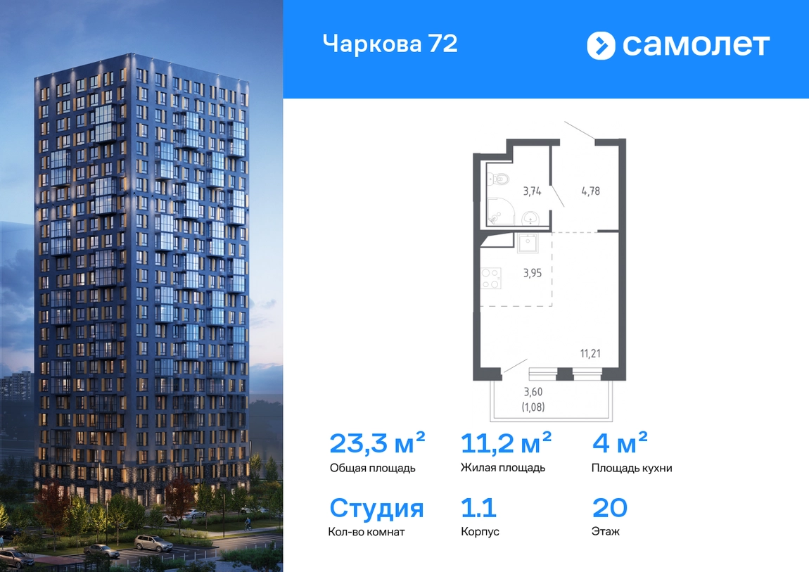 Строим кварталы для жизни с заботой о будущем. Предлагается квартира студия комфорт-класса 24,4 кв.м в корпусе 1.1 на 20 этаже, в ЖК «Чаркова 72» Квартира с чистовой отделкой. Доступность дополнительных опций уточняйте у застройщика. Приобрести квартиру возможно по специальным акциям от застройщика, с текущими условиями акций можно ознакомиться в блоке «Акций». Цена динамическая и может отличаться, уточняйте актуальность у застройщика. Идеальное сочетание городского комфорта и размеренной жизни — квартал «Чаркова 72» на северо-востоке города. В дизайне 17-24-этажных домов с панорамными балконами нашли отражение нотки сибирской природы. От «Чаркова 72» удобно добираться до центра города — всего 17 минут пути. А в 2 минутах от дома находится Тобольский тракт. Для семейного отдыха отлично подойдет парк Гагарина — он находится в 7 минутах от квартала. В закрытых дворах тихо и уютно — все авто остались на одном из 4 многоуровневых паркингов, которые находятся за территорией квартала. Можно спокойно гулять по бульвару и заниматься йогой на спортивной площадке. На первых этажах домов — кафе и магазины. Рядом с проектом — детские сады и школы, городская поликлиника и МФЦ. Во всех квартирах есть выводы под кондиционеры, на подземных этажах — индивидуальные кладовые, на первых — места для хранения велосипедов и колясок. В квартирах можно выбрать варианты отделки: чистовая, черновая и улучшенная из материалов повышенного класса.#yan19-2r1806007#О застройщике