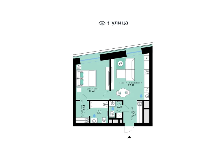 В продаже — однокомнатная квартира с чистовой отделкой, общей площадью 56,79 кв. м. Квартира расположена на седьмом этаже одинадцатиэтажной секции корпуса класса Адвансд в новом районе СберСити, который строит Сбер. Дом находится на второй береговой линии Москвы-реки.