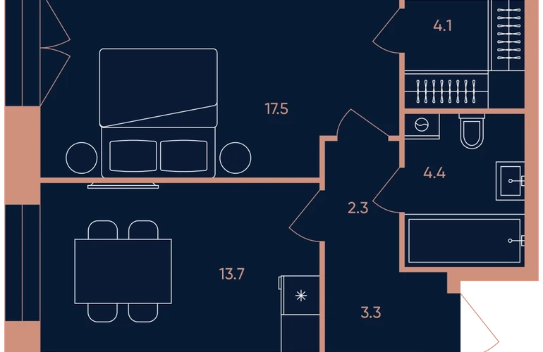1-ком, 45.3 кв.м., 6/27эт.